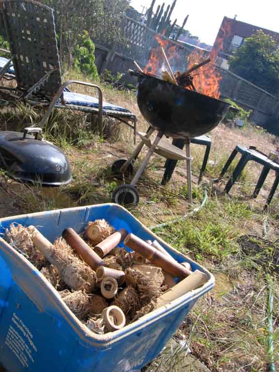 Bamboo root (end) cut extras make excellent coals for barbeque!